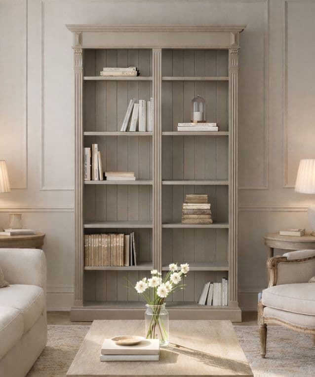 Our French Empire open bookcase; has just a little French je-ne-sais-quoi with carved detailing - fluting, corbels and deep cornicing and elegant proportions.