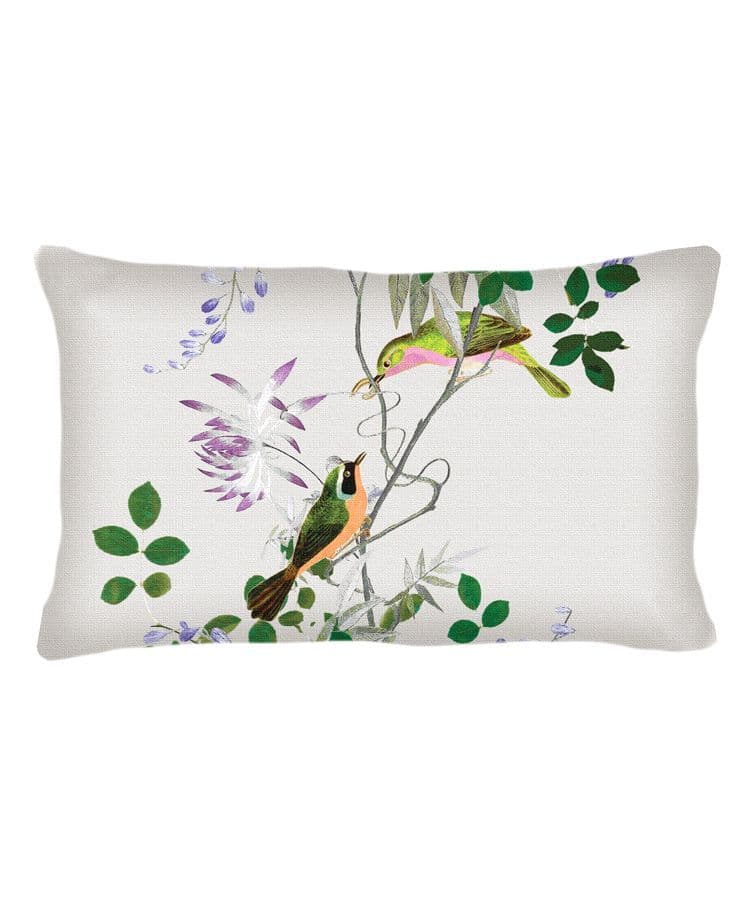Jardin des Oiseaux 50 x 50 cushion backed with natural linen. Feather pad.